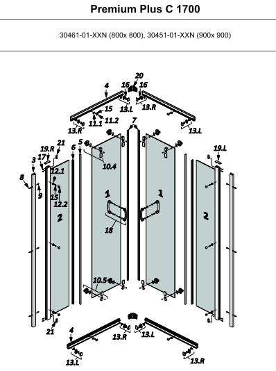 Radaway Uszczelka magnetyczna przejrzysta komplet Premium Plus C 1700, 009-10402700+009-10402800