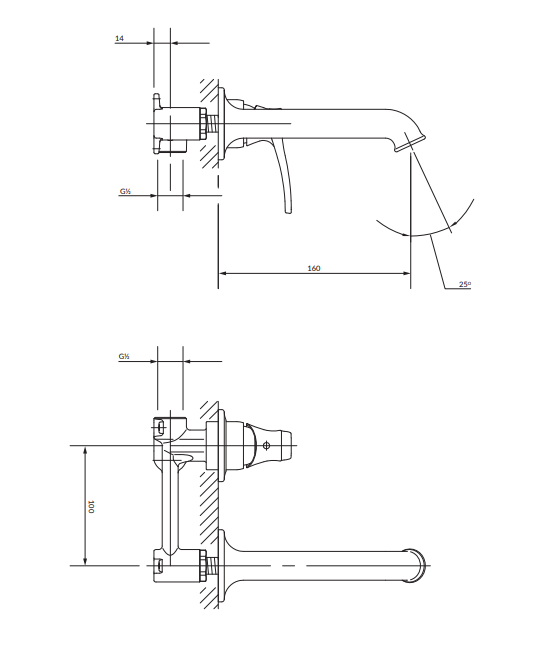 AD5115BR ART DECO bateria umywalkowa podtynkowa, brąz antyczny