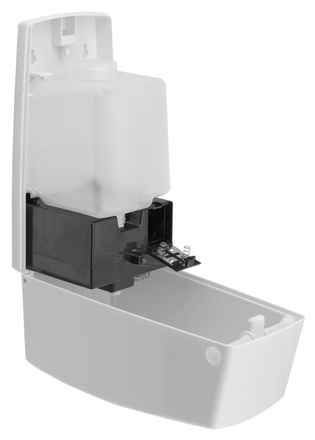 Wyposażony w czujnik ruchu, dozownik uruchamia się automatycznie po podstawieniu dłoni, zapewniając komfort i oszczędność mydła. Uniwersalne białe wykończenie oraz prosta, geometryczna forma sprawiają, że doskonale pasuje do różnych aranżacji wnętrz.
