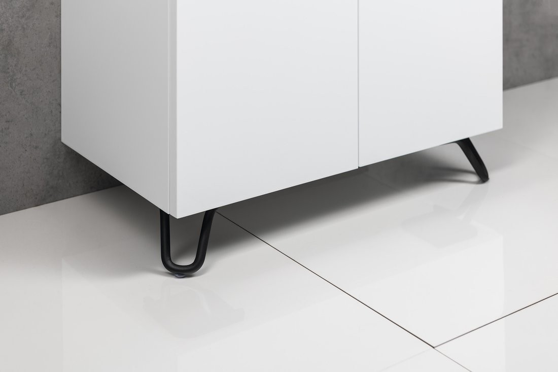 Nóżki meblowe AQUALINE 30320 to praktyczne i estetyczne rozwiązanie do szafek łazienkowych oraz innych mebli. Dzięki nowoczesnemu wykończeniu w kolorze czarny mat doskonale wpisują się w aktualne trendy aranżacyjne, nadając meblom lekkości i eleganckiego charakteru.