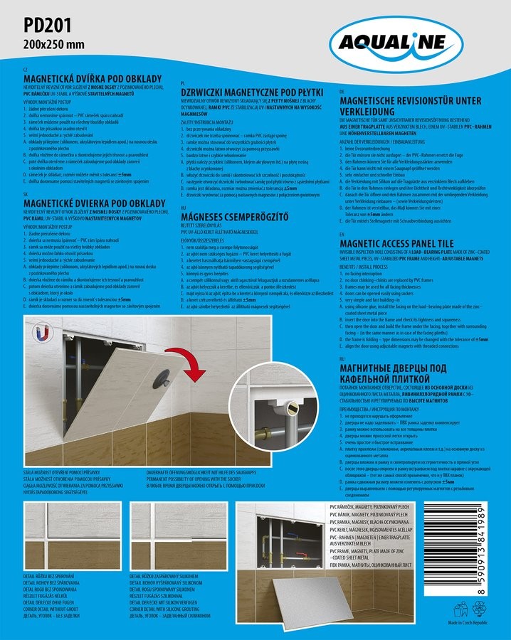 AQUALINE PD201 Drzwiczki rewizyjne magnetyczne pod płytki 200x250