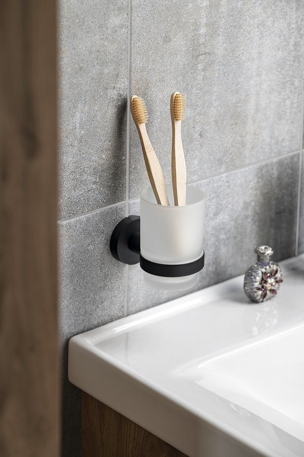 AQUALINE SB204 SAMBA – kubek na szczoteczki, szkło mleczne / czarny mat