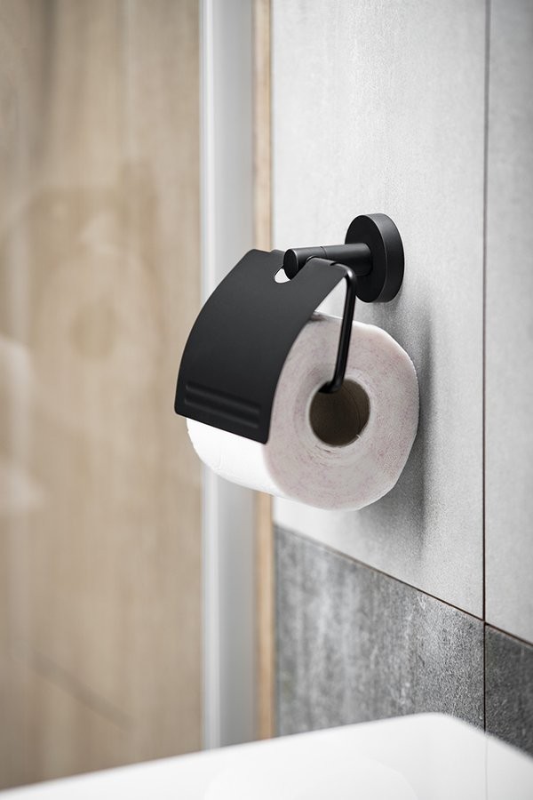 AQUALINE SB207 SAMBA – wieszak na papier toaletowy z klapką, czarny