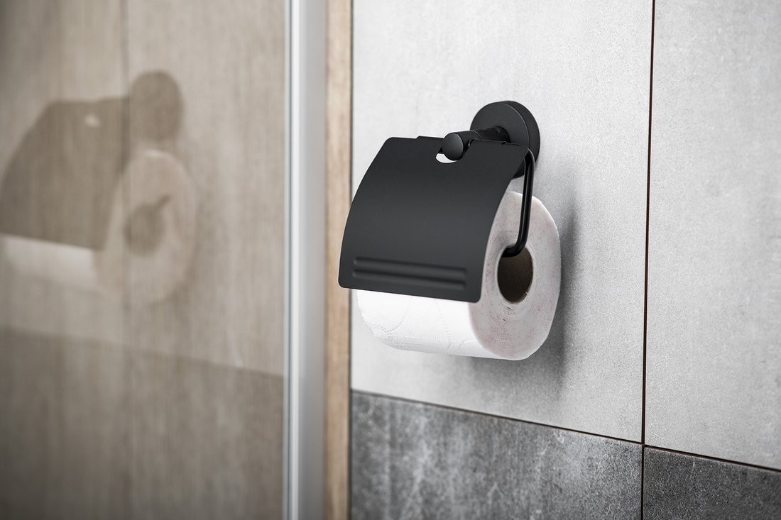 AQUALINE SB207 SAMBA wieszak na papier toaletowy z klapką, czarny