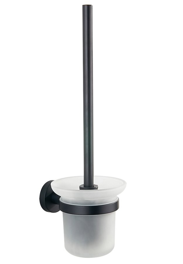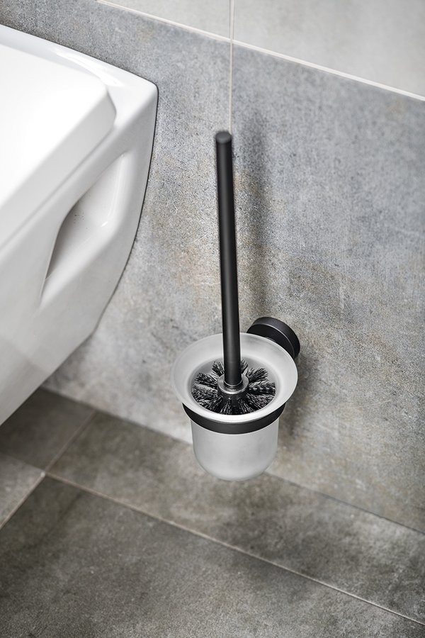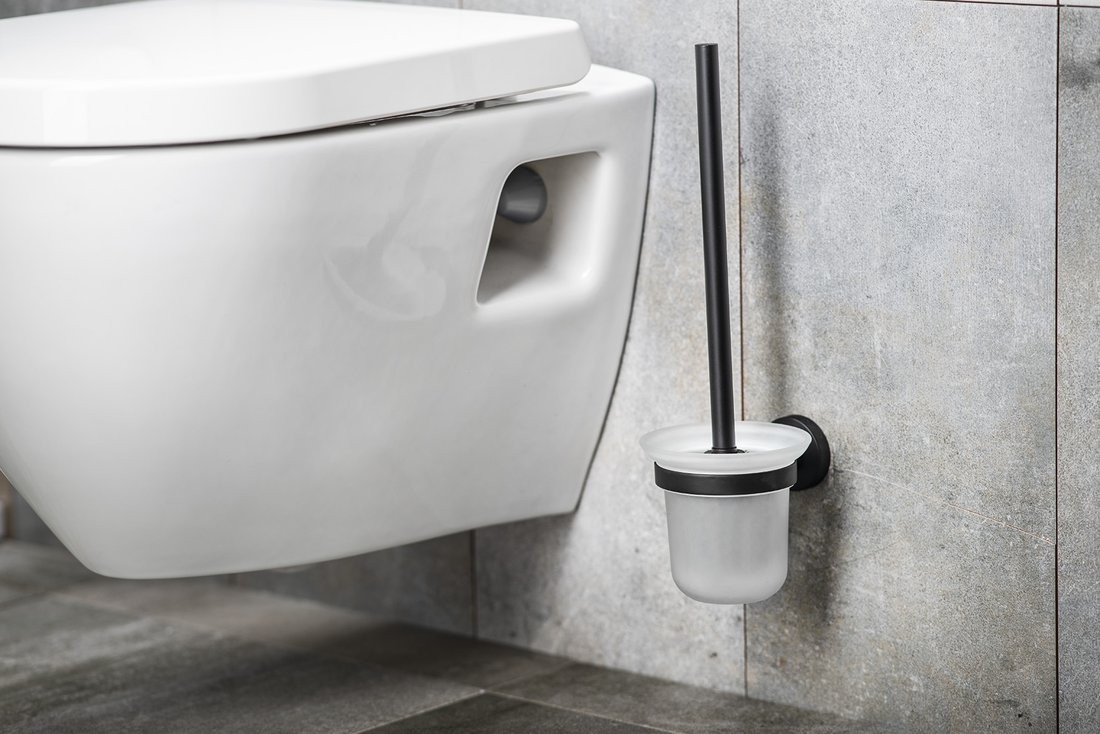 AQUALINE SB208 SAMBA – wisząca szczotka WC, szkło mleczne, czarny mat