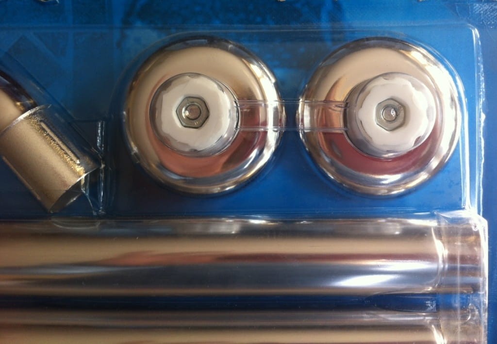 Mocowany na solidne kołki rozporowe 2x3szt - po 3szt na każdą stronę. (niewidoczne mocowanie schowane pod rozetą).