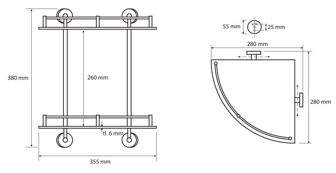 BEMETA 104202142 OMEGA podwójna narożnikowa półka szklana