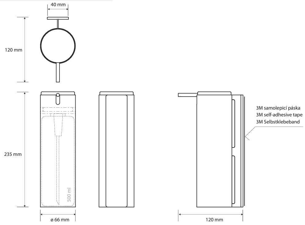 BEMETA 163109090 Dozownik mydła, 500 ml, czarny, przyklejany