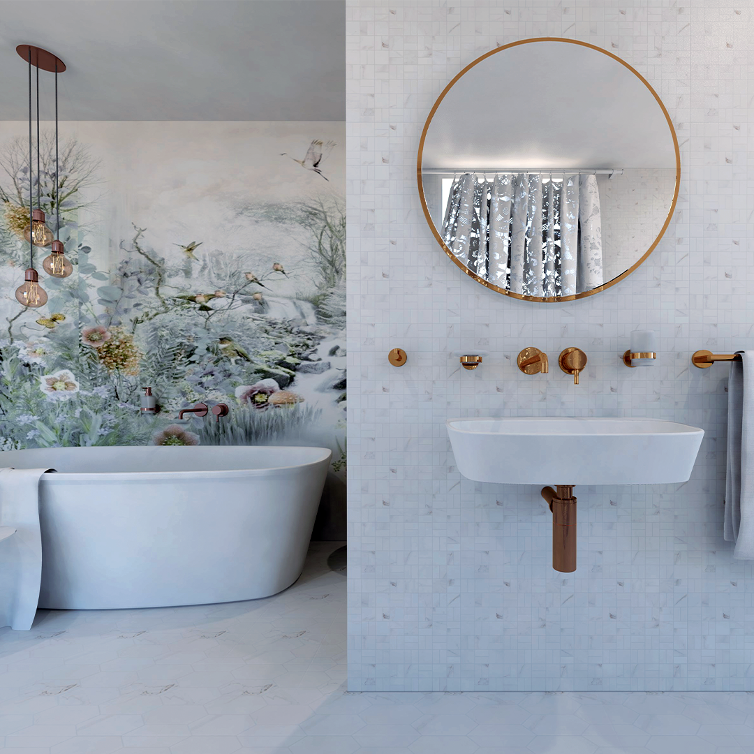 Haczyk podwójny w kolorze kawowo-złotym. Polecane do oświetlonych łazienek, kamienia, betonu lub marmuru.
