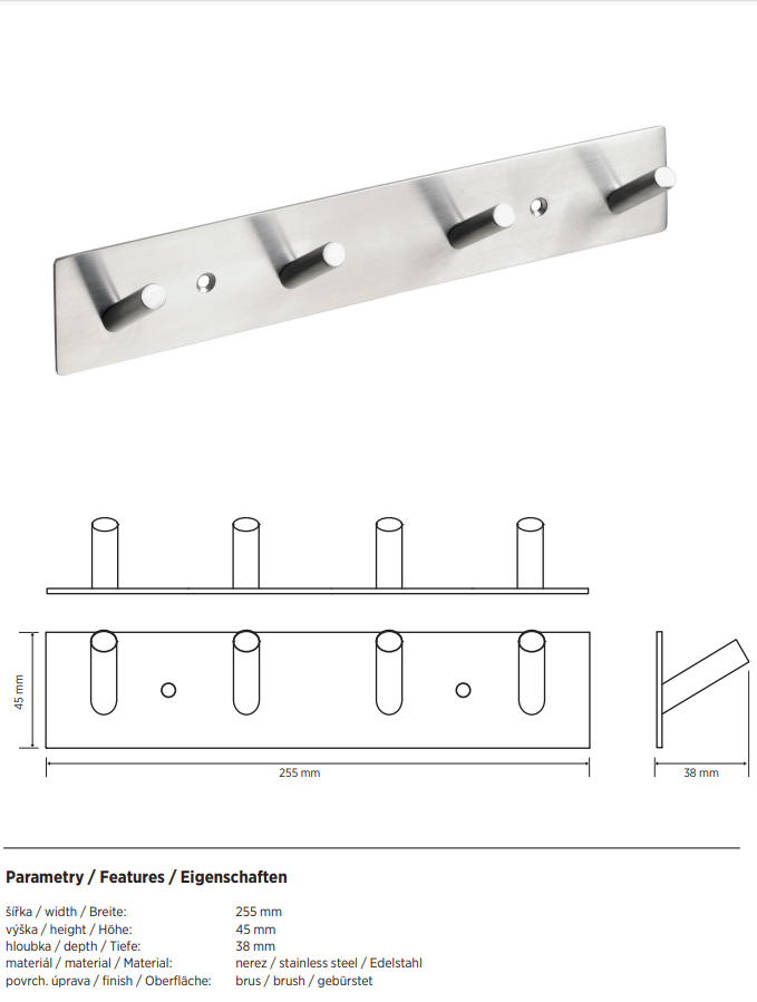 BEMETA EASY01: Wieszak z 4 haczykami, szczotkowany 164106295