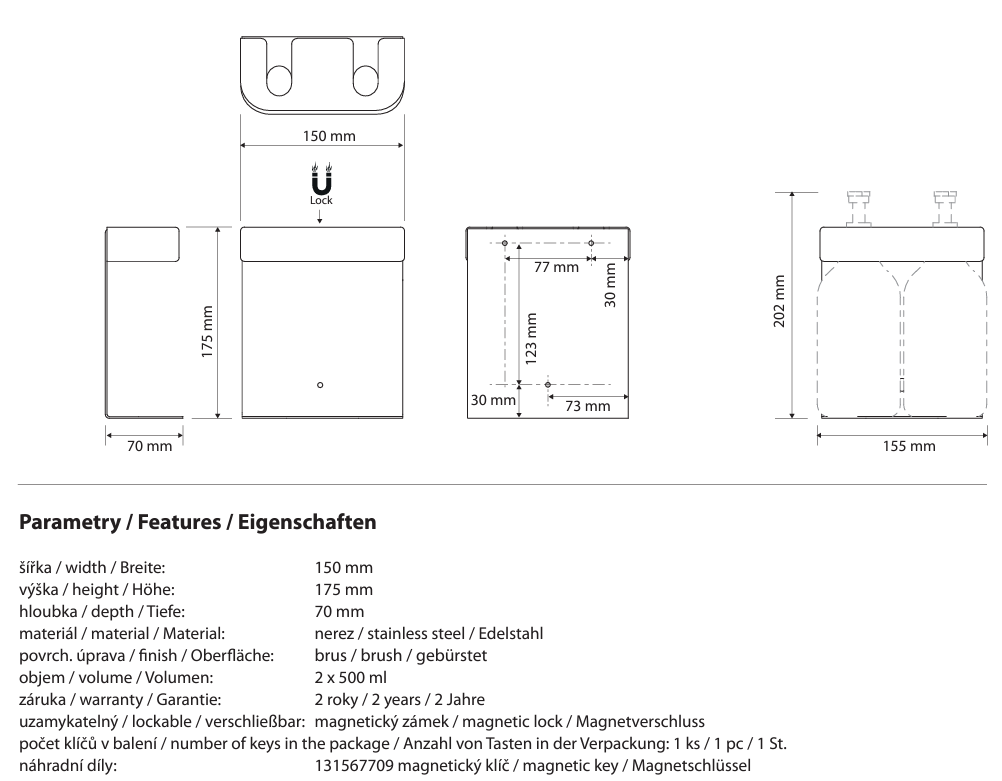BEMETA Podwójny Uchwyt do dozownika mydła, round, matt 146109435