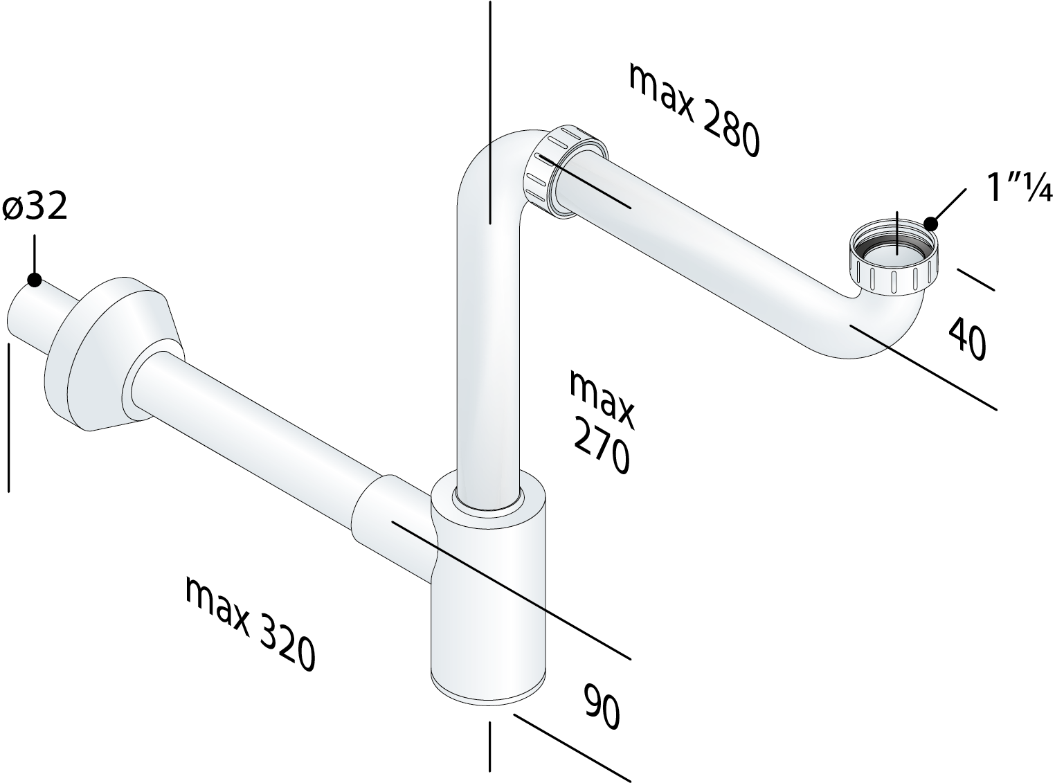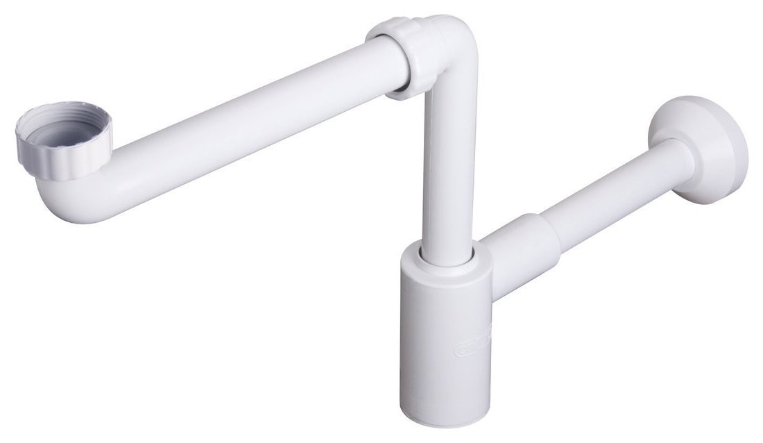 Specjalnie zaprojektowany syfon, który odprowadza wodę pod samą umywalką aż do ściany i pionowo w dół do ścieków. Takie rozwiązanie ma wykorzystanie szczególnie w szafkach umywalkowych lub z umywalkami z połką. Syfon oszczędzający miejsce znajduje również zastosowanie w łazience bezbarierowej.