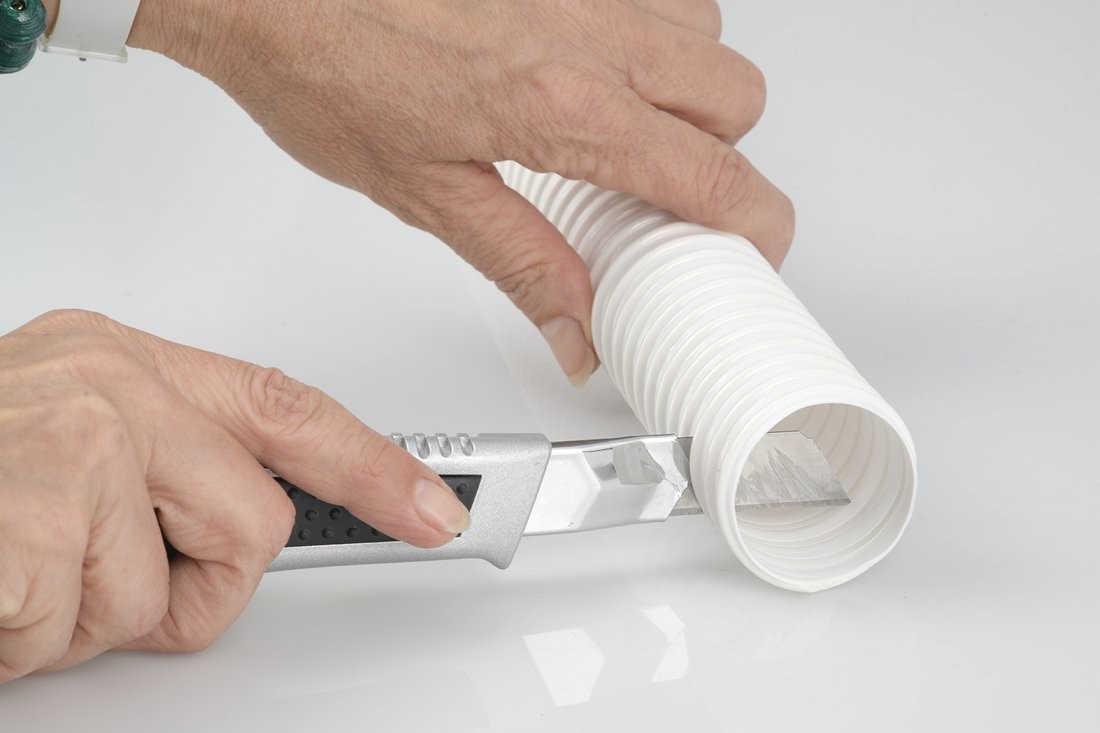 Elastyczny syfon umywalkowy jest wykonany z twardego plastiku. Cięciem można go skaracać na dowolną długość. Powierzchnia wewnątrz syfonu jest gładka i odporna na osadzanie się brudu.