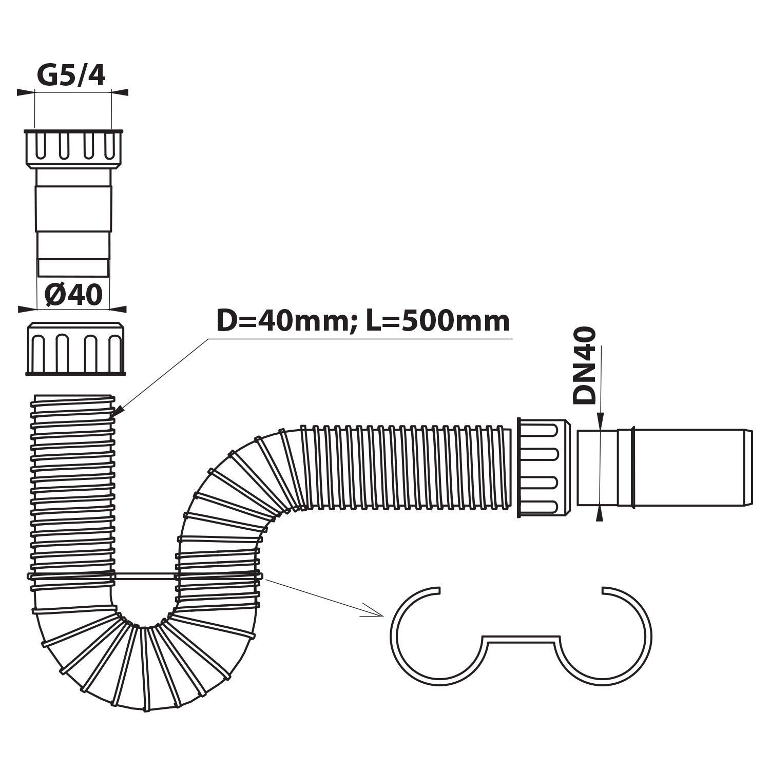 BRUCKNER FLEXY syfon umywalkowy 5/4", DN40, biały – 151.123.0