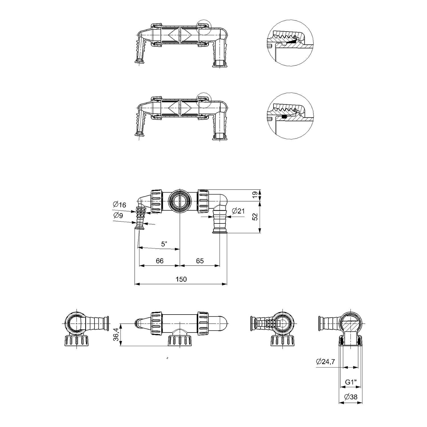 BRUCKNER Kolano podwójne do syfonu podtynkowego, białe 168.132.0