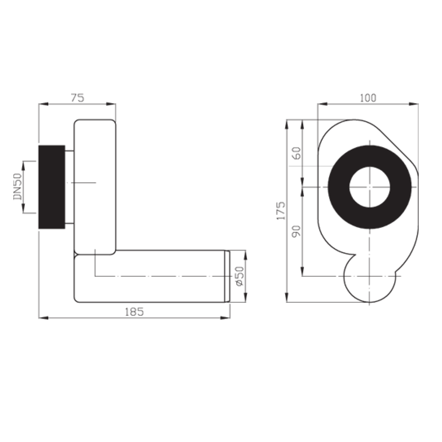 BRUCKNER Syfon do pisuaru, DN50, plastik – 191.203.0