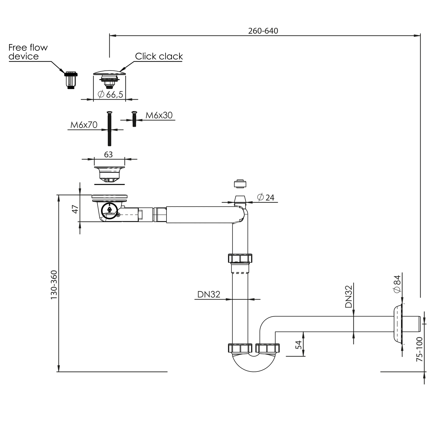 wyposażenie: syfon oszczędzający miejsce + korek klik-klak
