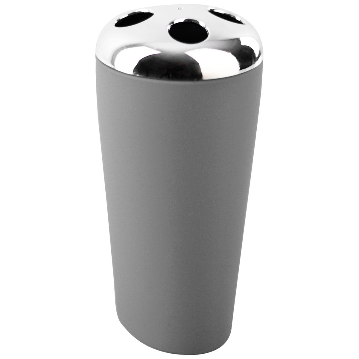 Kubek wolnostojący z tworzywa z efektem wykończenia guma z elementem chromowanym.