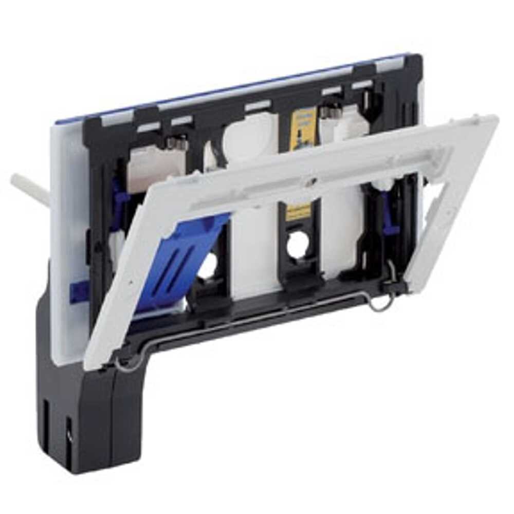 - zestaw zawiera: płytkę ochronną, pojemnik wiszący na kostki higieniczne, ramkę montażową z mechanizmem odchylania