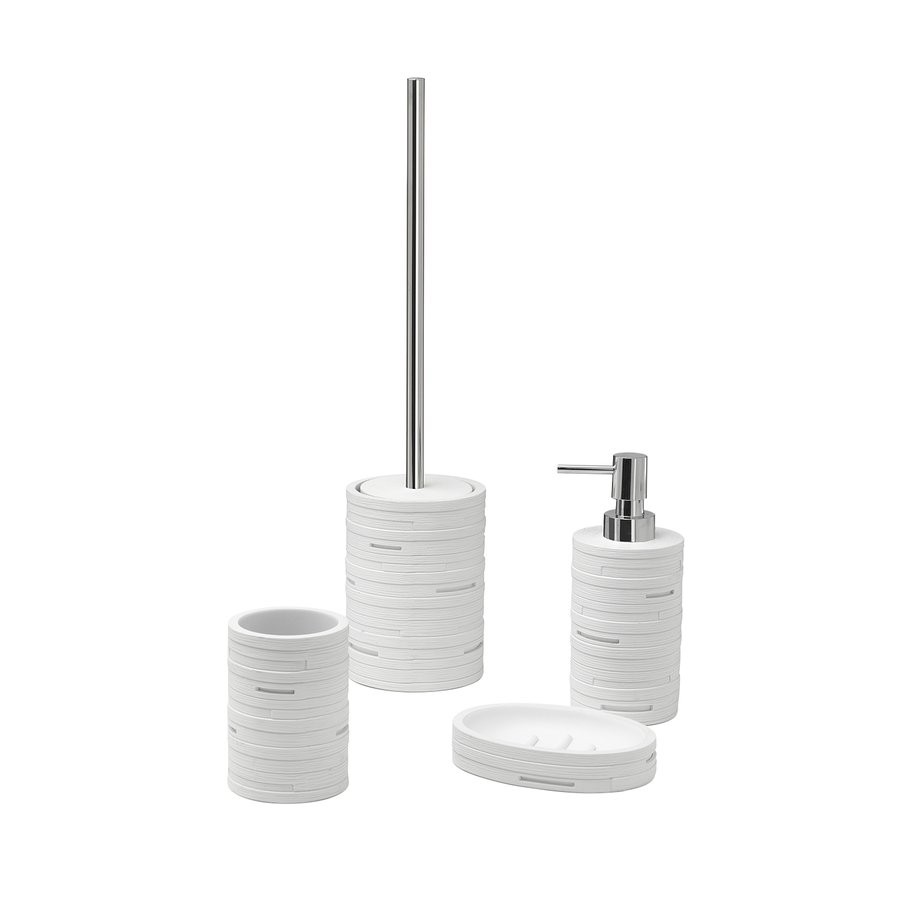 Szczotka do WC z serii HELEN, wykonana z wysokiej jakości poliresynu — trwałego materiału odpornego na wodę, niełamliwego i łatwego w utrzymaniu. Produkt ma nowoczesny, obły kształt i jest przeznaczony do postawienia w łazience.