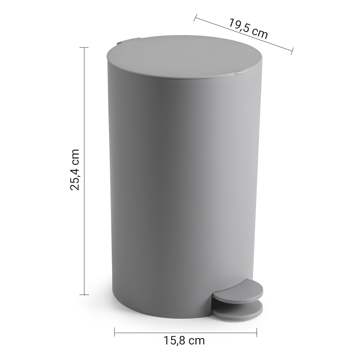 Gedy SH0908 SHARON – kosz na śmieci 3l, plastik ABS, szary, obły kształt, z wyjmowanym pojemnikiem