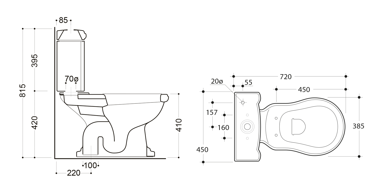 Model przeznaczony jest do kompletowania ze spłuczką oraz deską WC z serii RETRO, co pozwala stworzyć spójną i estetyczną aranżację łazienki.