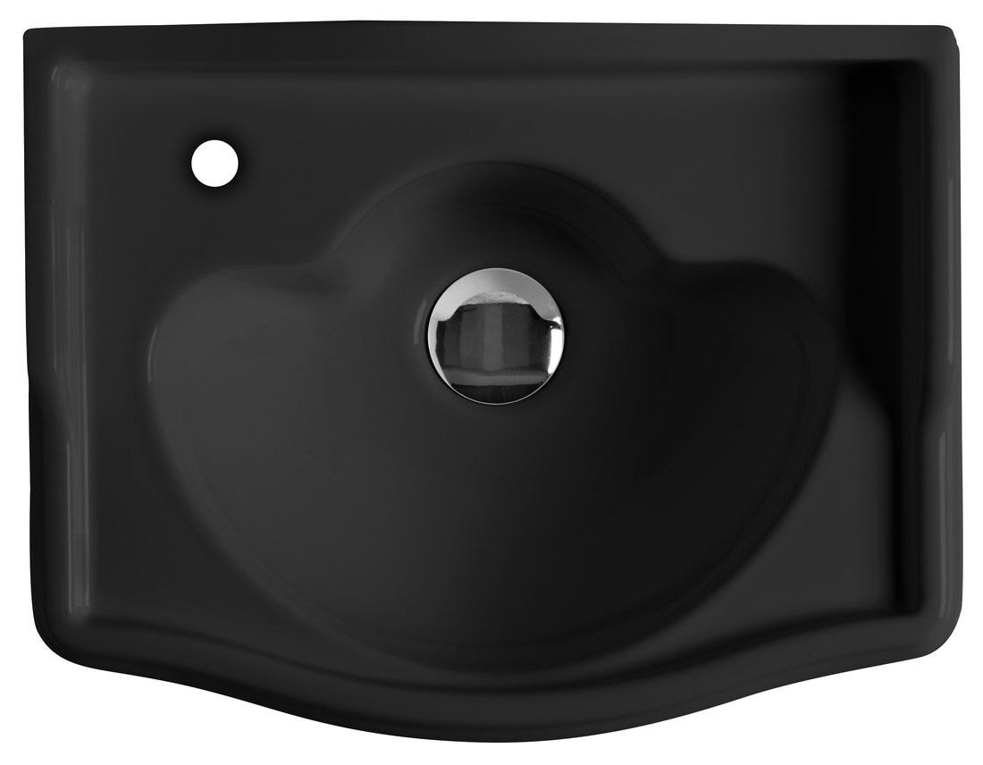 Kerasan 103331SX RETRO – umywalka ceramiczna 41×30 cm, czarny mat, otwór na baterię po lewej, bez przelewu