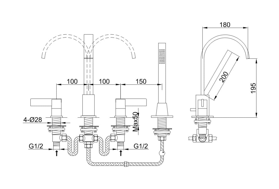 Bateria posiada głowice ceramiczną. Wylewka zakończona perlatorem, wykończenie chrom. Montaż za pomocą wężyków przyłączeniowych.