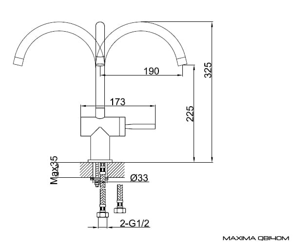 Bateria posiada głowice ceramiczną. Montaż na weżyki przyłączeniowe. Wylewka zakończona perlatorem. Materiał to mosiądz wykończony chromem.