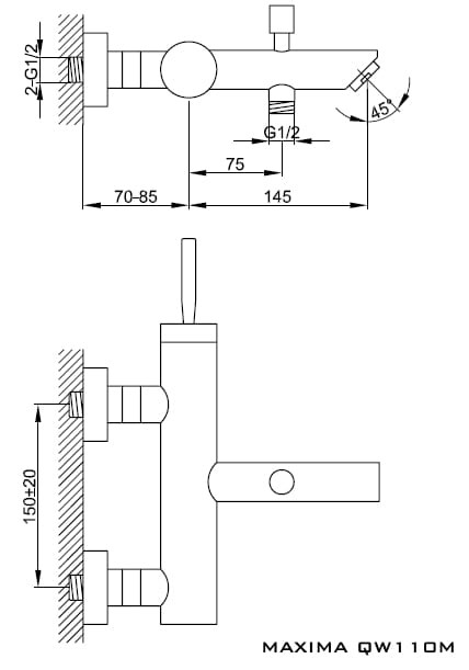 Kohlman MAXIMA QW110M bateria wannowa ścienna