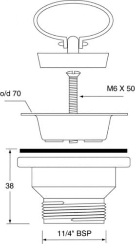 McAlpine HC15B Spust umywalkowy 1.1/4″x70mm z sitkiem ze stali nierdzewnej i korkiem gumowym. Przepustowość – 56 l/min. przy słupie wody 120mm.