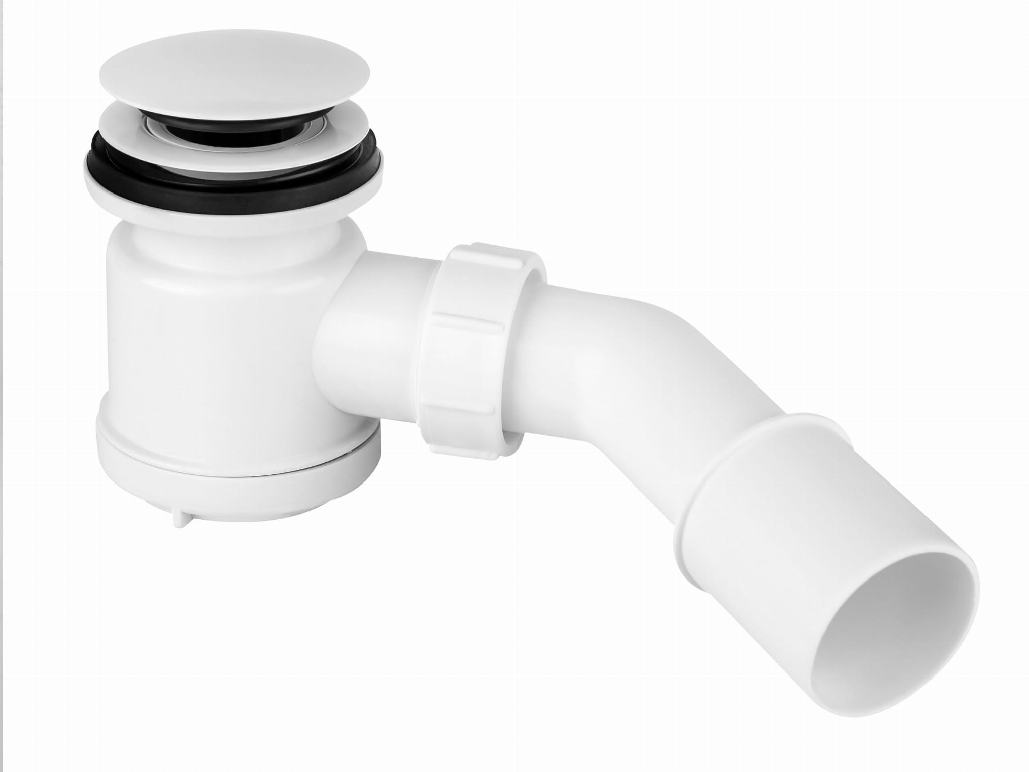 Syfon brodzikowy z elementem umożliwiającym czyszczenie od góry. Syfon wyposażony jest w system zamykania/otwierania tzw. „klik-klak”. Wysokość syfonu 90mm. Pokrywa, o średnicy 70mm oraz pierścień wykonane są z mosiądzu. Syfon wyposażony jest w klucz ułatwiający montaż, a także zapobiegający zarysowaniu elementów. Przepustowość – 38 l/min. przy słupie wody 120mm. Kolor biały.