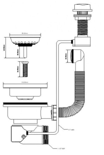 McAlpine HC7HC12-POL2-25 Syfon zlew.rurowy podwójny 3,5"X50mm z podłą.pralki lub zmywarki,spust z mech.automatycznym, przelew