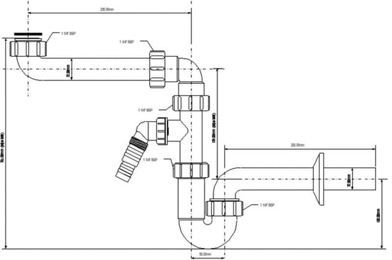 McAlpine HC7HC13 Syfon zlewozmywakowy rurowy 11/2"x50mm z podłą.pralki lub zmywarki, bez spustu