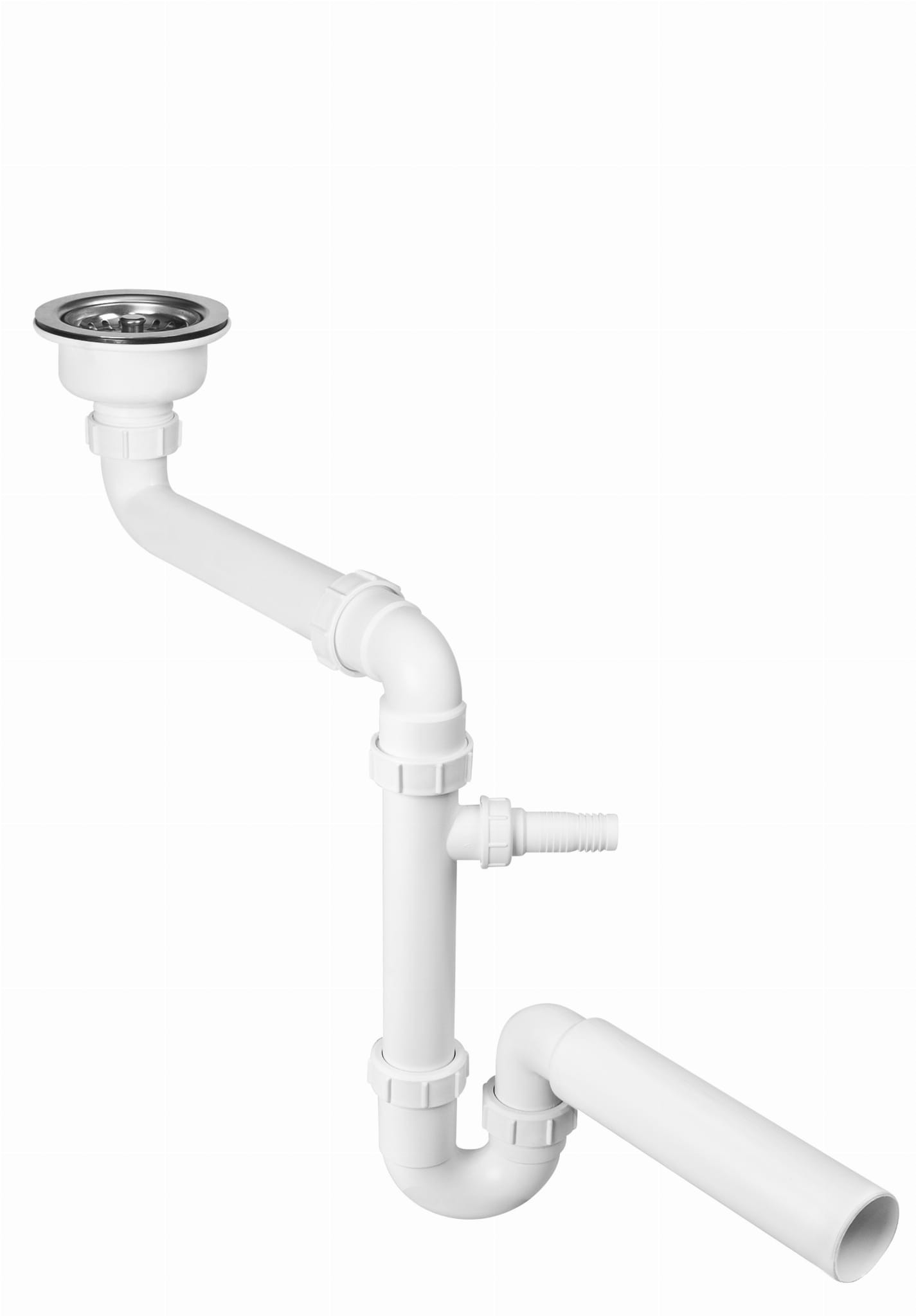 Syfon zlewozmywakowy rurowy 1.1/2x50mm ze spustem 1.1/2x113mm, z podłączeniem do pralki lub zmywarki, z przedłużką umożliwiającą wykorzystanie przestrzeni pod zlewozmywakiem.