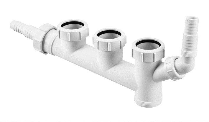 Podłączenie wielofunkcyjne zlewozmywakowe z podwójnym podłączeniem pralki lub zmywarki.