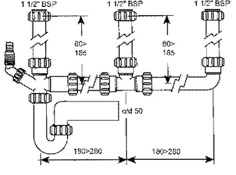 McAlpine SSK3-50 Syfon zlewozmywakowy wielofunkcyjny 11/2"x50 z podłączeniem pralki i zmywarki bez spustu