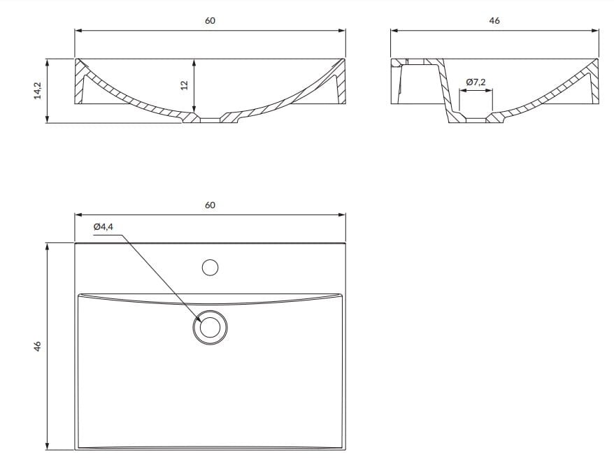 OMNIRES NAXOS600BP NAXOS umywalka nablatowa/wisząca Marble+, 60 x 46 cm biały połysk