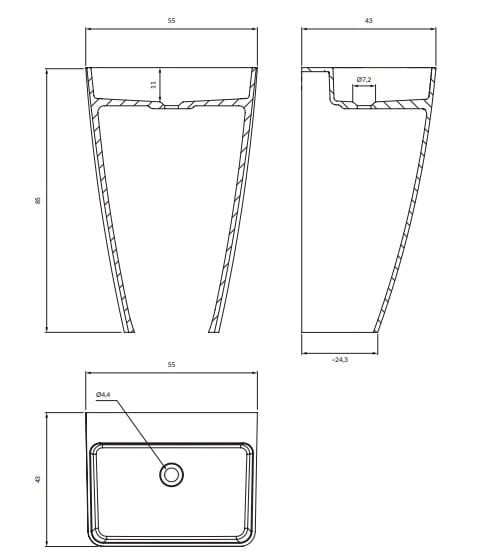 Umywalka została wykonana z materiału kompozytowego (M+), którego głównym składnikiem jest skała dolomitowa. Innowacyjna technologia produkcji gwarantuje perfekcyjne wykonanie każdego detalu, jednocześnie zapewniając wyjątkową trwałość i odporność.