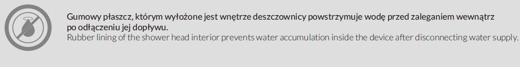 Wnętrze deszczownicy jest wyłożone gumowym płaszczem, dzięki czemu woda nie zostaje w deszczownicy po odłączeniu dopływu wody.