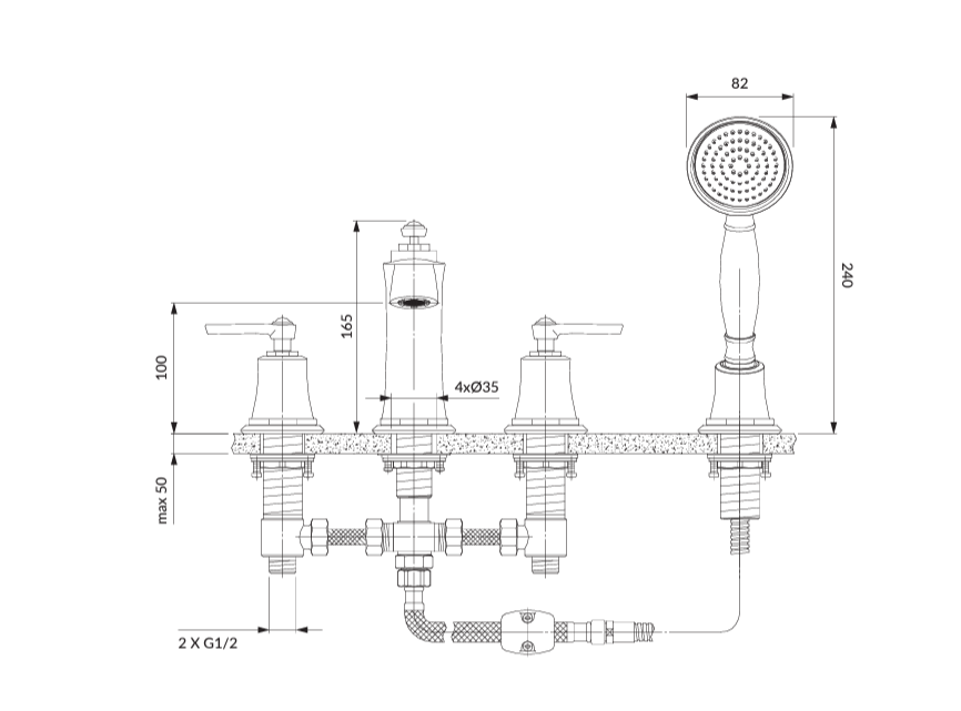 Omnires AM5232BSB ARMANCE bateria wannowa 4-otworowa, mosiądz szczotkowany