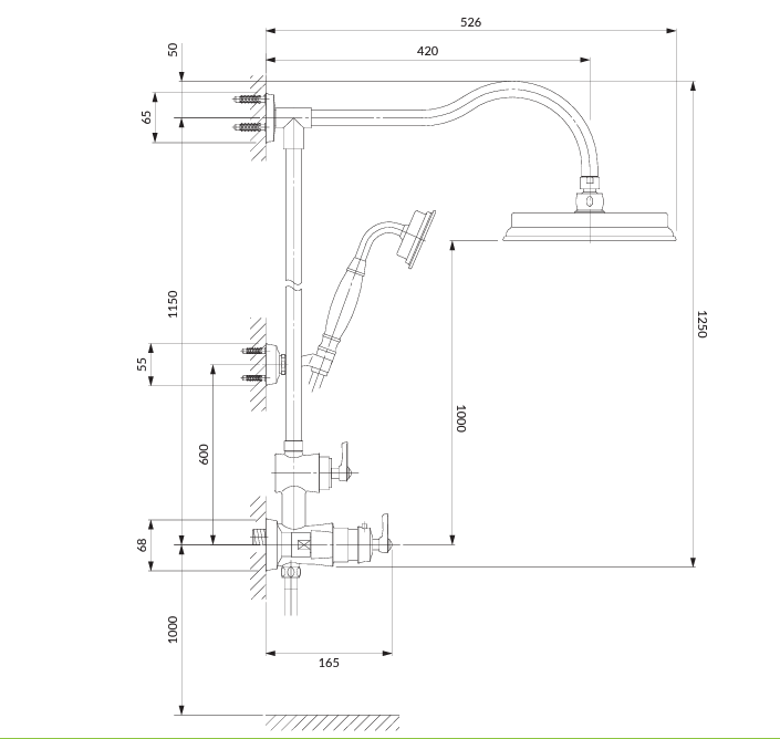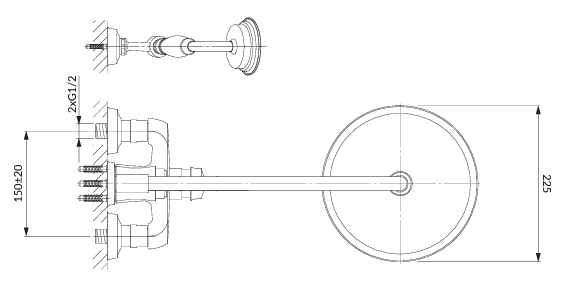 - deszczownica mosiężna, rozmiar: ø22,5 cm, zasięg od ściany: 42 cm