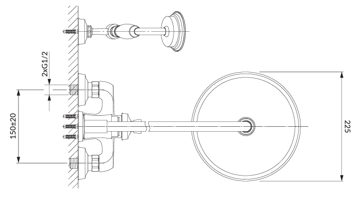 - deszczownica mosiężna, rozmiar: ø22,5 cm, zasięg od ściany: 42 cm