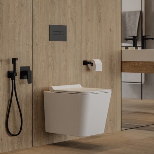 Omnires BOSTONSETBPBL BOSTON podtynkowy zestaw WC 4w1, biały połysk/czarny mat
