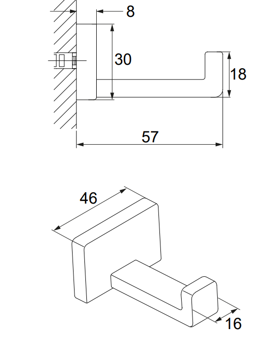 Wymiary: odległość od ściany: 5,8 cm; szerokość: 4,5 cm; wysokość: 2,9 cm.