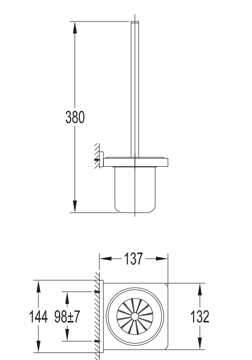 Szerokość 13,2 cm, wysokość 38 cm, odległość od ściany 13,7 cm.