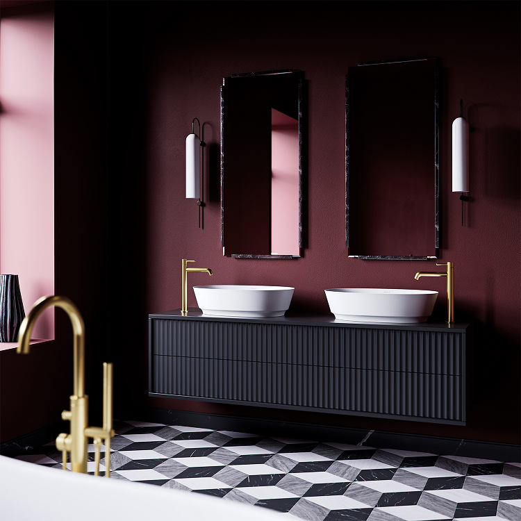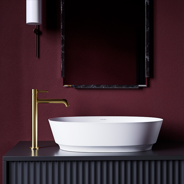 Umywalka nablatowa z kolekcji OMNIRES NEO M+ łączy współczesny minimalizm z tradycyjnymi klasycznymi detalami. Wyraziste podcięcie przy podstawie, łuki i subtelnie wykończone ranty nawiązują do neoklasycystycznych form, nadając kolekcji elegancki i ponadczasowy charakter. Wewnątrz umywalki dopasowana maskownica dyskretnie zakrywa odpływ, nie zaburzając przy tym harmonijnie wyprofilowanej sylwetki.