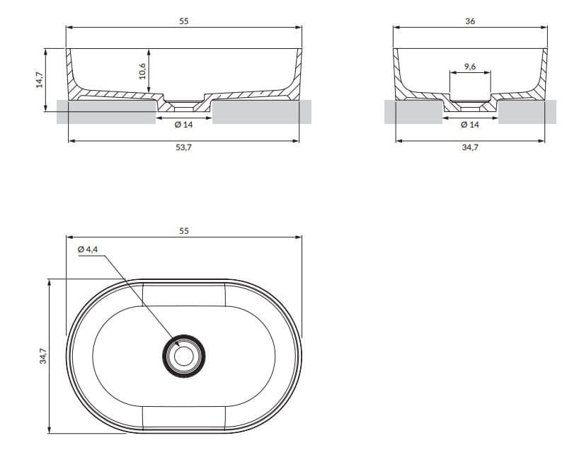 OVO M+ | umywalka nablatowa, 55 x 36 cm