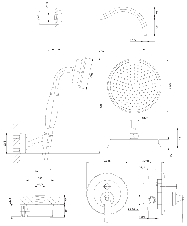 - zestaw prysznicowy punktowy (ARMANCE-PGL), 1-funkcyjny