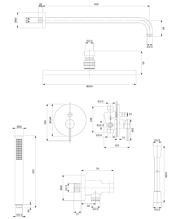 - ramię prysznicowe, zasięg od ściany: 41 cm